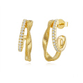 | 14KT DIAMOND TWISTED GOLD EARRINGS D.18-YG |