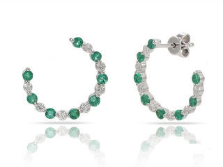 14KT DIAMOND & EMERALD FASHION EARRINGS D.38 E.86 IN WG