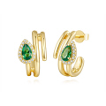 | 14KT DIAMOND & 2 SECTIONS OF EMERALD CLOVER HUGGY EARRINGS D.08 E.13-YG |