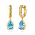 | 14KT DIAMOND & BLUE TOPAZ PEAR DROP FLUTED EARRINGS D.15 BT.2.05CT-YG |