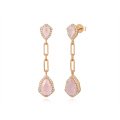 | 14KT DIAMOND & ROSE QUARTZ PEAR SHAPED DROP EARRINGS D.36 RQ.3.15-PG |