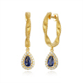 | 14KT DIAMOND & PEAR SHAPED DROP SAPPHIRE FLUTED EARRINGS D.13 S.45-YG |