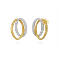| 14KT DIAMOND TWO TONE DOUBLE INTERTWINED CIRCLE EARRINGS D.20-YG |