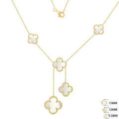 14KT 5 MOTHER OF PEARL DROP CLOVER NECKLACE 6 CT MP