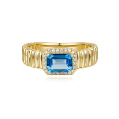 14KT DIAMOND & BLUE TOPAZ FLUTED RING D.0.09 BT.1.25-YG