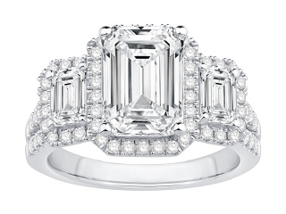 14KT & LAB GROWN 3 STONE EMERALD CUT ENGAGEMENT RING CTR 3CT D.4.55CT-WG