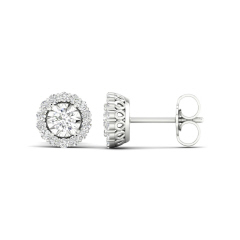 14KT DIAMOND FLOWER HALO EARRINGS WITH MIRACLE PLATE D.50