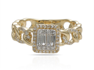 14KT DIAMOND EMETTE RING WITH DIAMOND LINKS D.37-YG