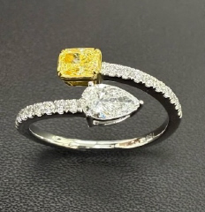 18KT RADIANT YELLOW & PEAR SHAPED WHITE DIAMOND BYPASS RING D.86