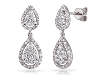 14KT DIAMOND PEAR SHAPED FLORAL CLUSTER TWO DROP EARRING IN WG D.62CT