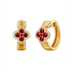 14KT DIAMOND & RUBY CLOVER EARRINGS D.15 R.67-YG