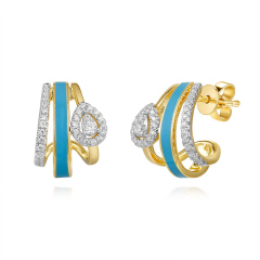 14KT DIAMOND & TURQUOISE COLORED ENAMEL EARRINGS D.28-YG