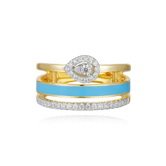 14KT DIAMOND & BLUE ENAMEL FASHION RING D.28-YG