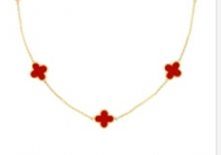 14KT 3 RED AGATE CLOVER BY THE YARD NECKLACE RA.3.20CT-YG