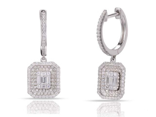 14KT DIAMOND ROUND & BAGUETTE EMETTE EARRINGS D.75