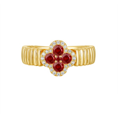 14KT DIAMOND & RUBY CLOVER RING D.10 R.48-YG