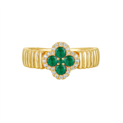 14KT DIAMOND & EMERALD CLOVER RING D.10 E.40-YG